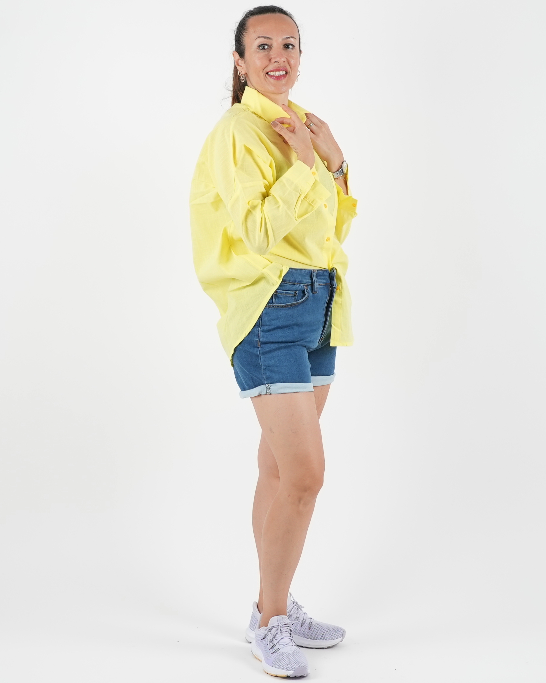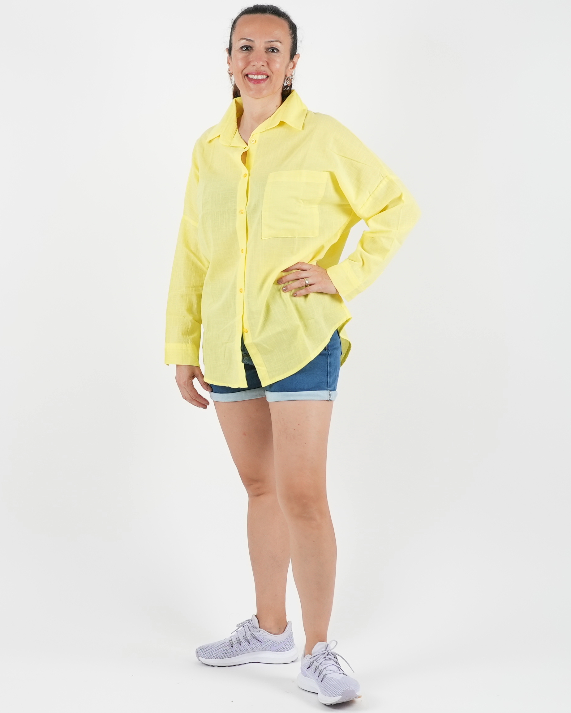 - Şık ve Rahat: Lila veya sarı keten gömleği beyaz pantolon ve hasır çanta ile tamamlayarak sofistike bir yaz tarzı yaratabilirsiniz.